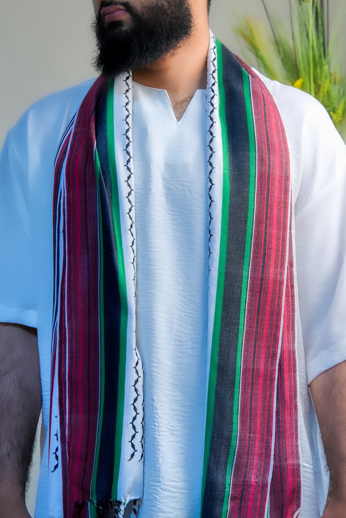 Handcrafted by Aydarus, our master artisan in Yemen, every thread carries both prayer and purpose. The olive tree design is more than decorative—it’s devotional. It connects lands of barakah, uniting those who have not forgotten the oppressed, and who wear their solidarity with grace and conviction.