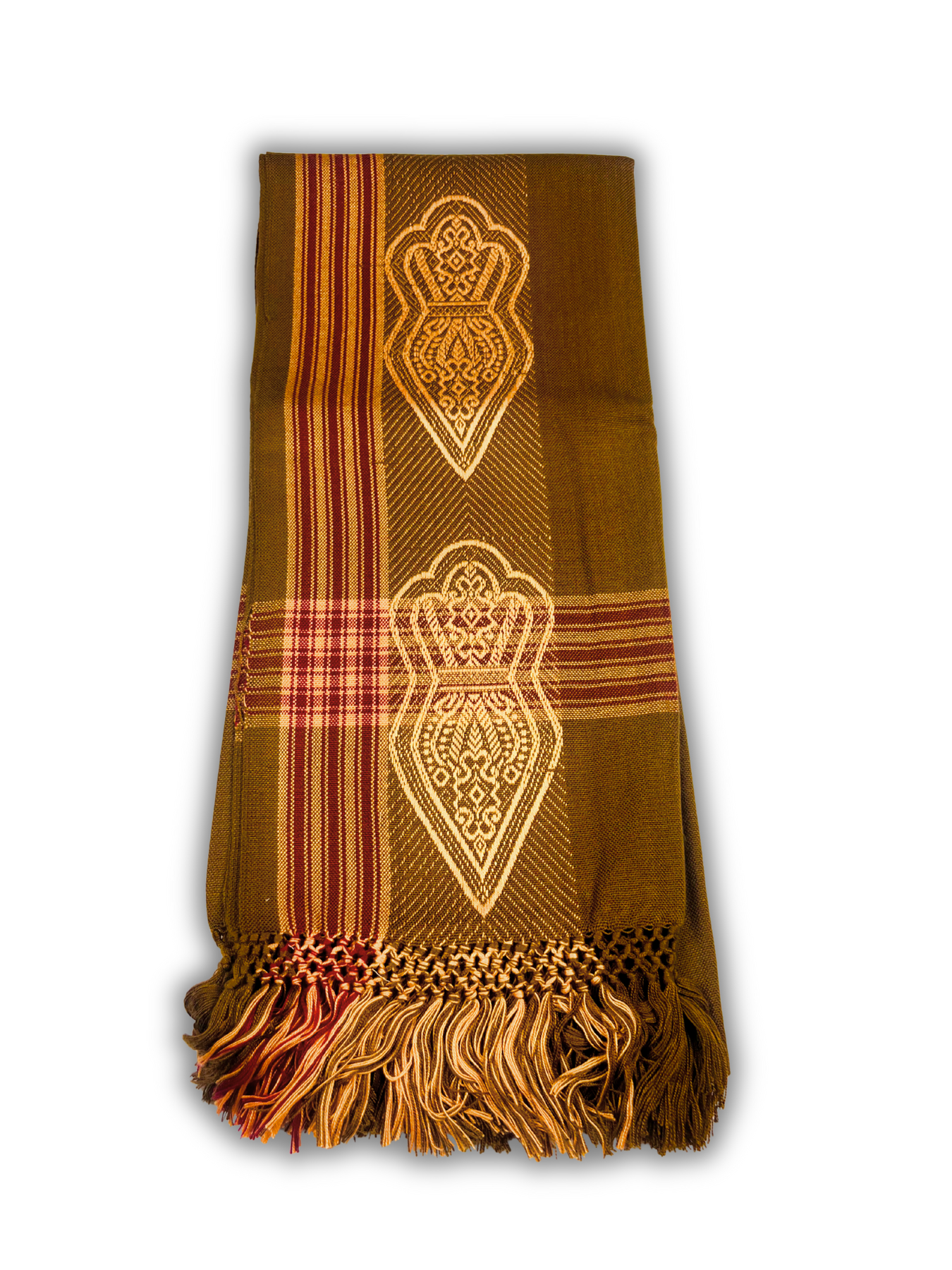Woven with care using durable, high-quality materials, this scarf features a bold Na’layn emblem embedded into a sleek gold/brown base. The design strikes a balance between subtlety and symbolism, making it a powerful accessory that can be worn daily or during moments of spiritual reflection.