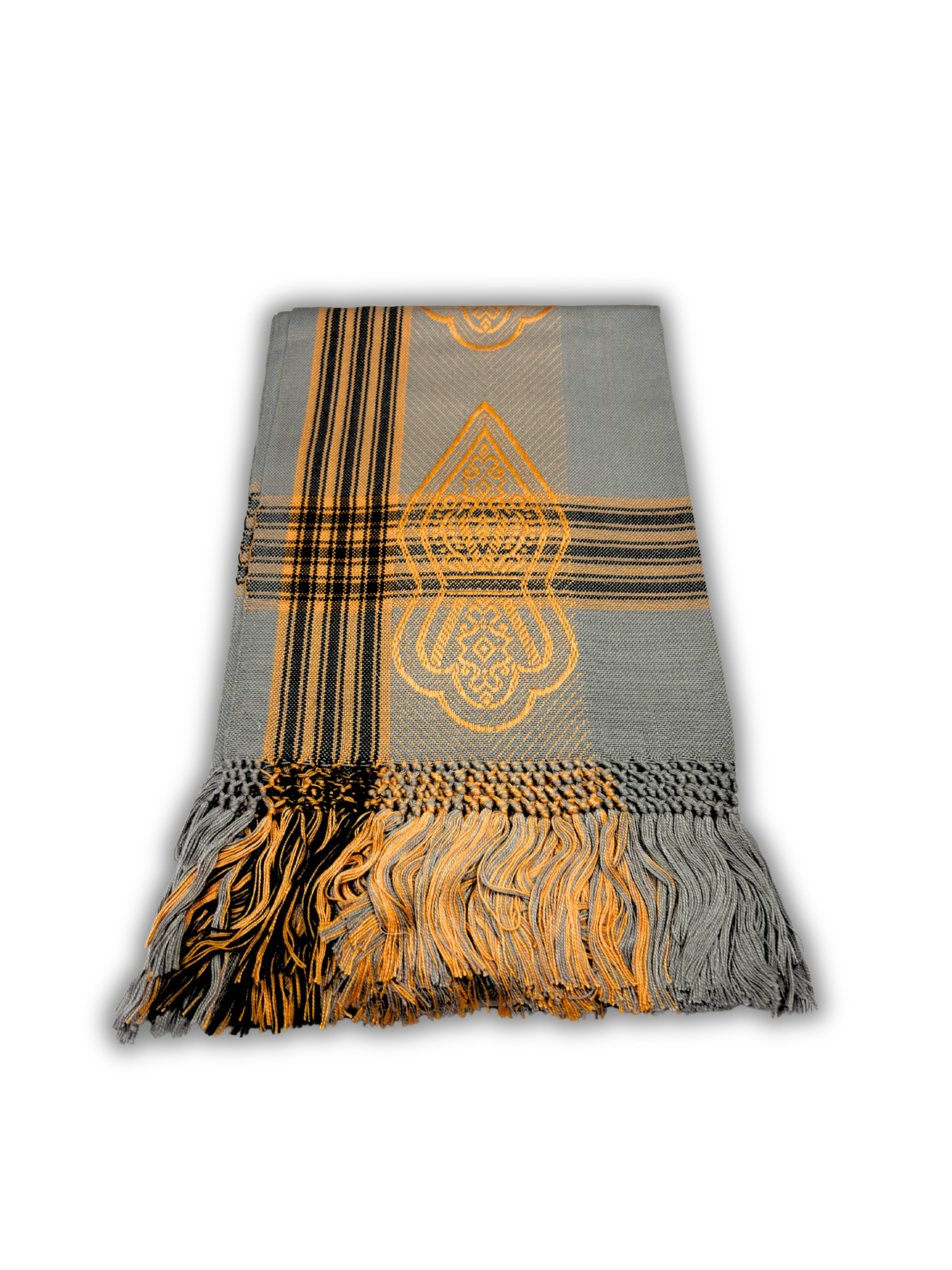 Woven with care using durable, high-quality materials, this scarf features a bold Na’layn emblem embedded into a sleek silver base. The design strikes a balance between subtlety and symbolism, making it a powerful accessory that can be worn daily or during moments of spiritual reflection.