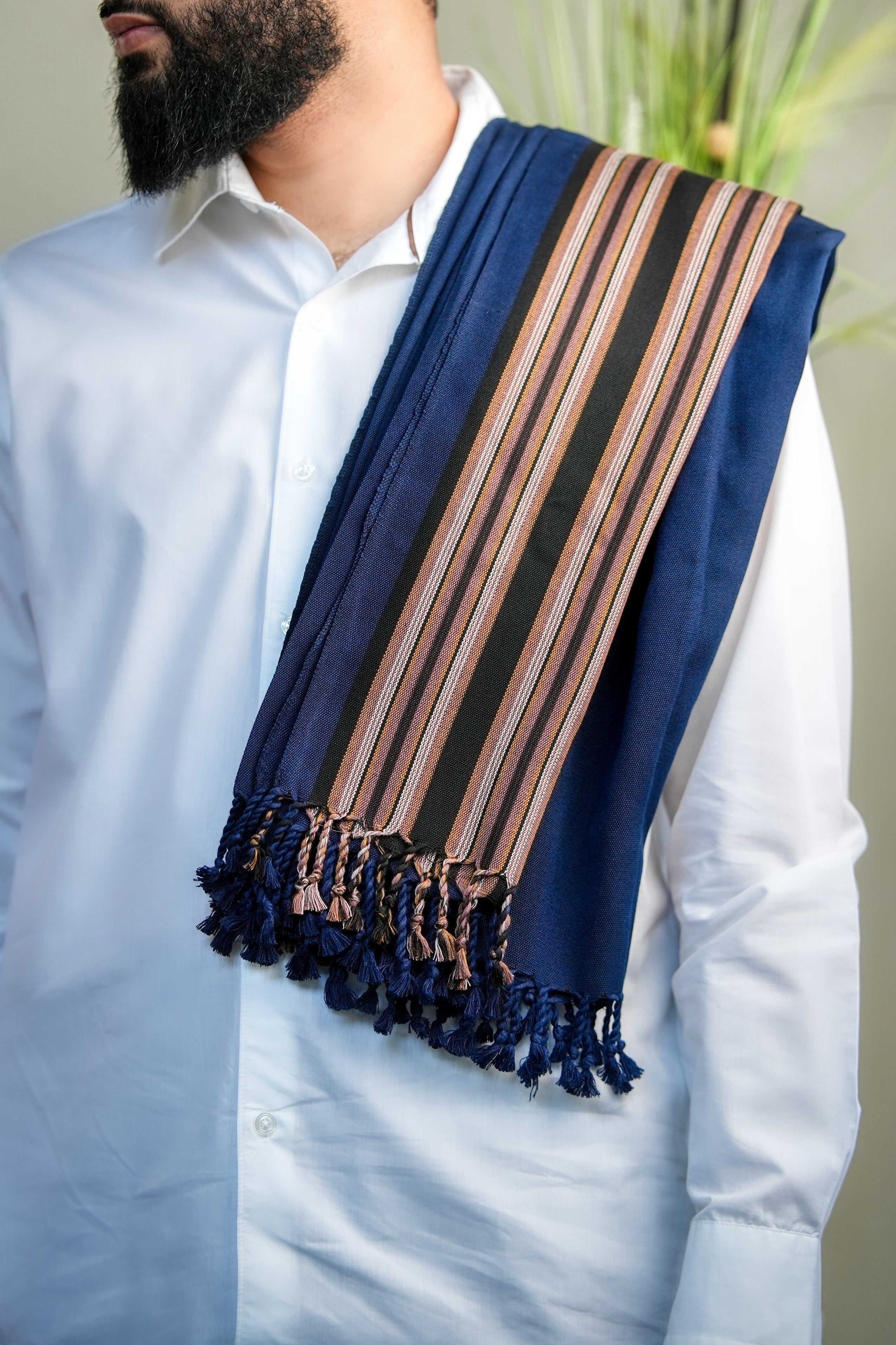 Introducing our ‘Jabal Grove Green’ shawl, inspired by the lush hills of Yemen where vibrant citrus groves cascade across mountain slopes. Its base is a rich, verdant green, evoking the vitality of leaves and fertile earth, while streaks of crisp white and warm orange flow across like sunlight dancing on ripening fruit.