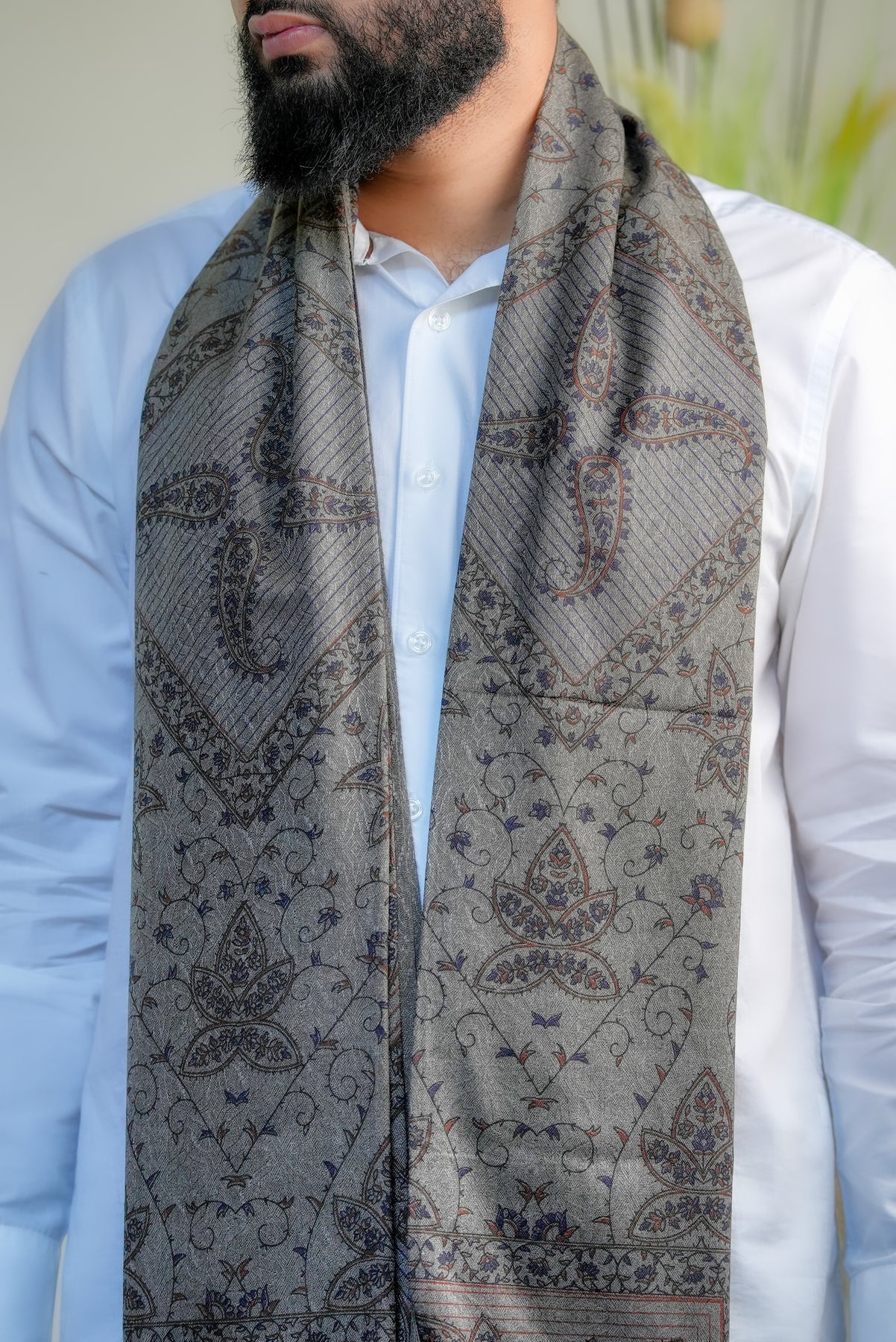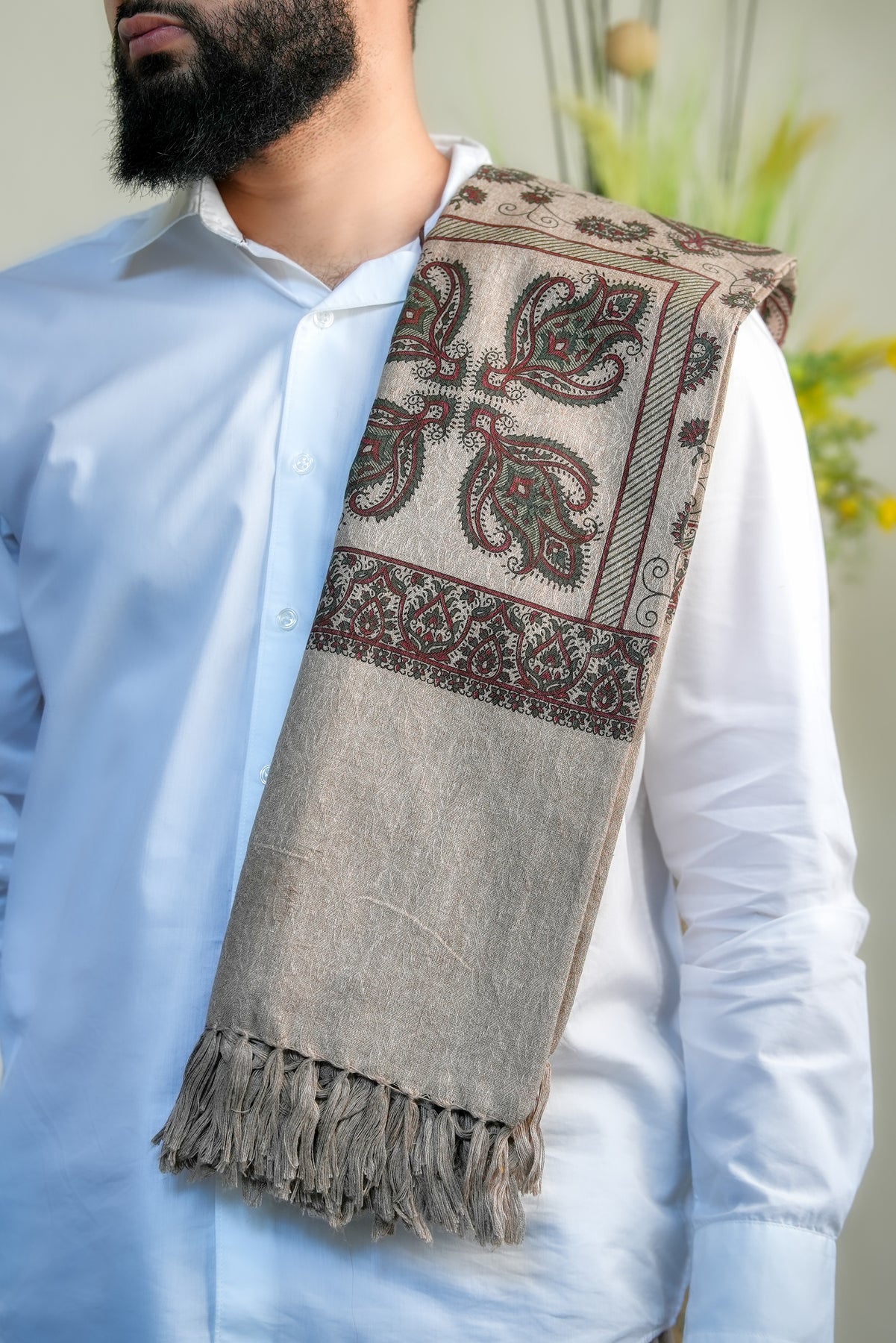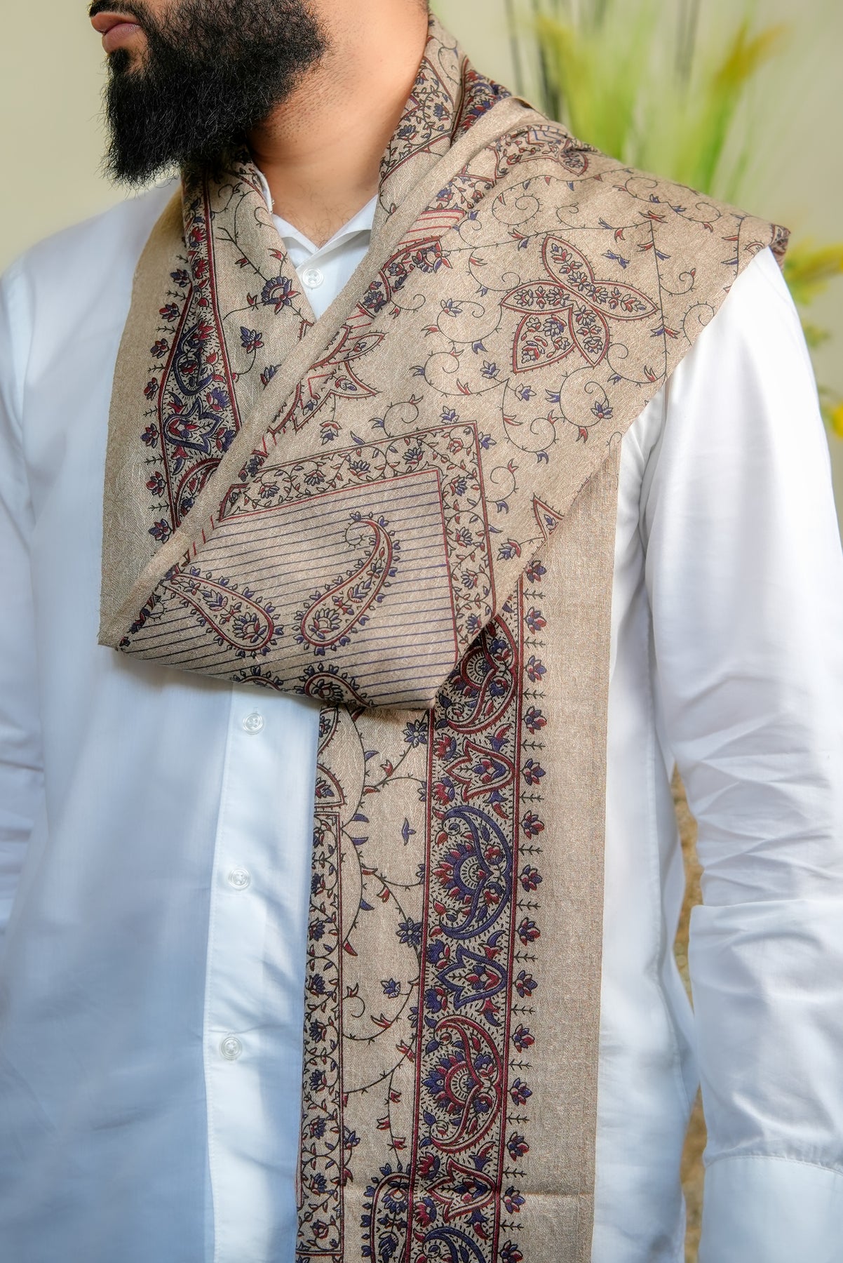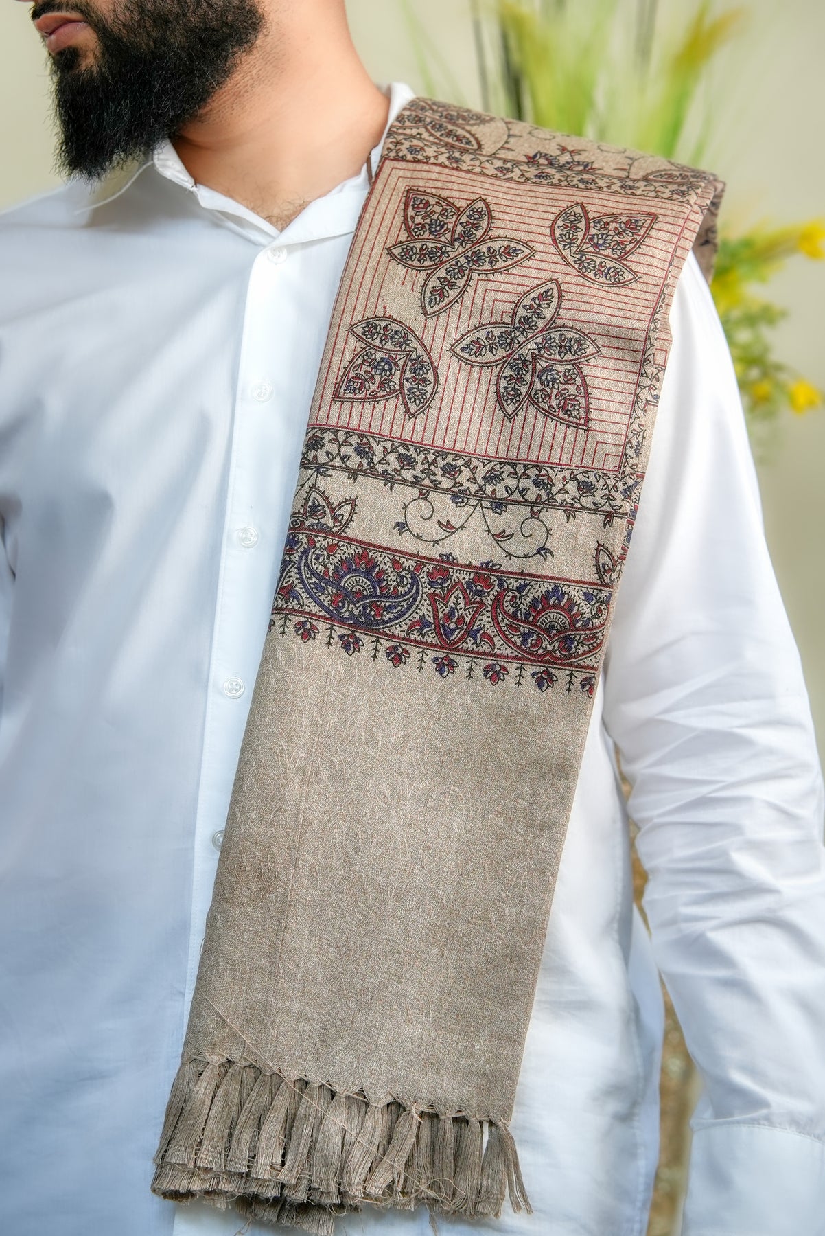 The ‘Zahara Garden Vine’ shawl celebrates the quiet elegance of a garden in full bloom, where every flower and tendril moves in rhythm with nature. Its intricate, intertwined motifs evoke serenity, harmony, and timeless beauty, making it more than an accessory — it’s a reflection of nature’s poetic grace.