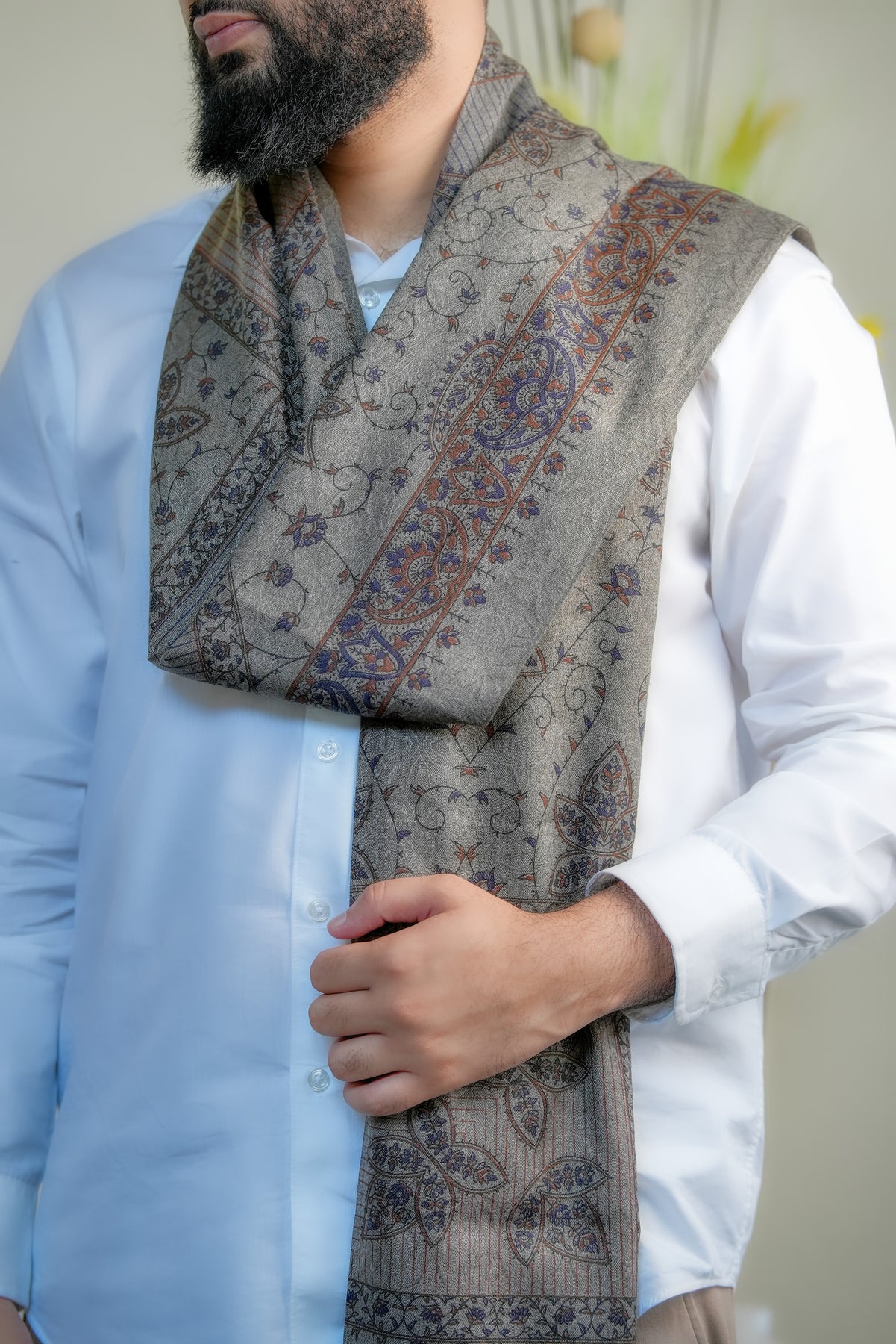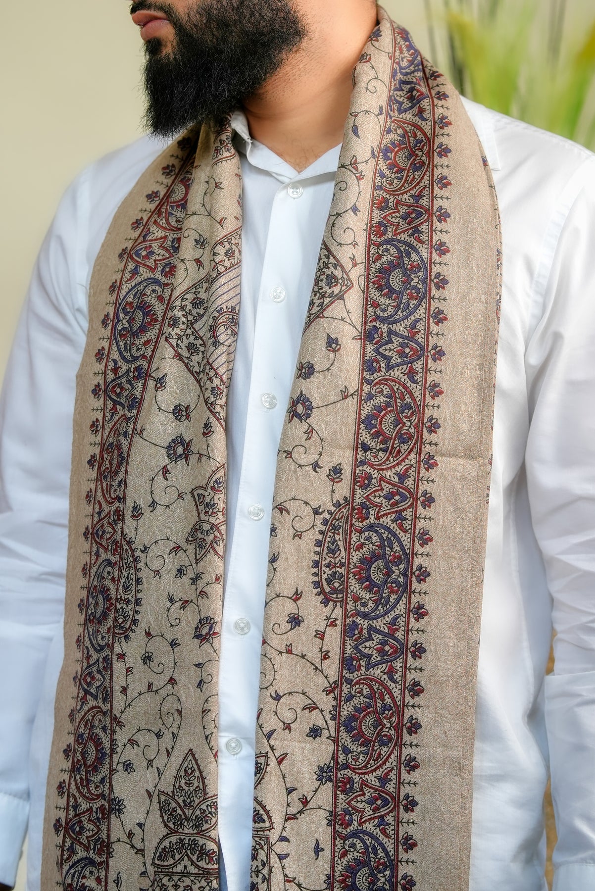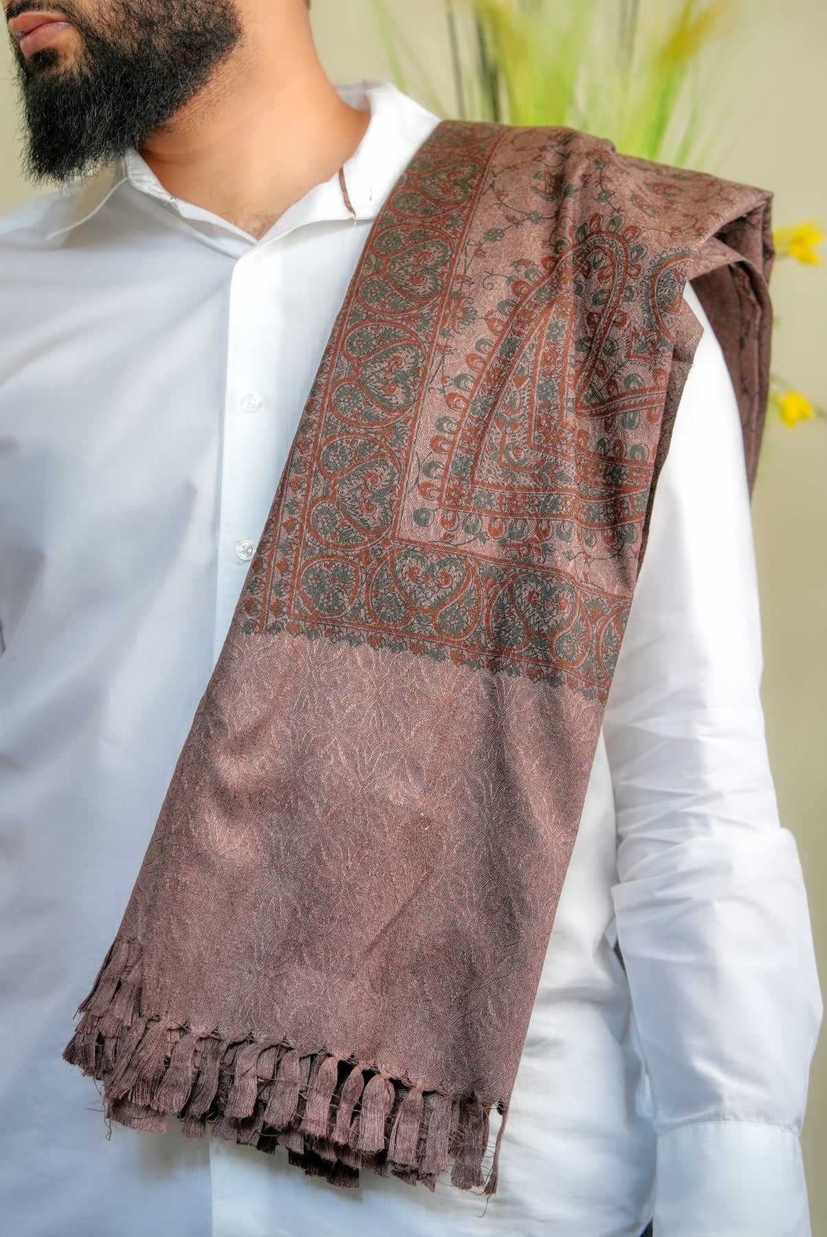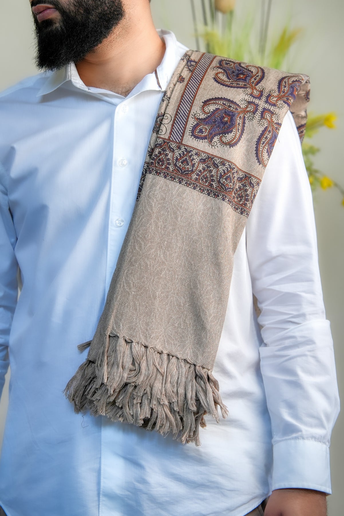 The ‘Zahara Garden Vine’ shawl celebrates the quiet elegance of a garden in full bloom, where every flower and tendril moves in rhythm with nature. Its intricate, intertwined motifs evoke serenity, harmony, and timeless beauty, making it more than an accessory — it’s a reflection of nature’s poetic grace.