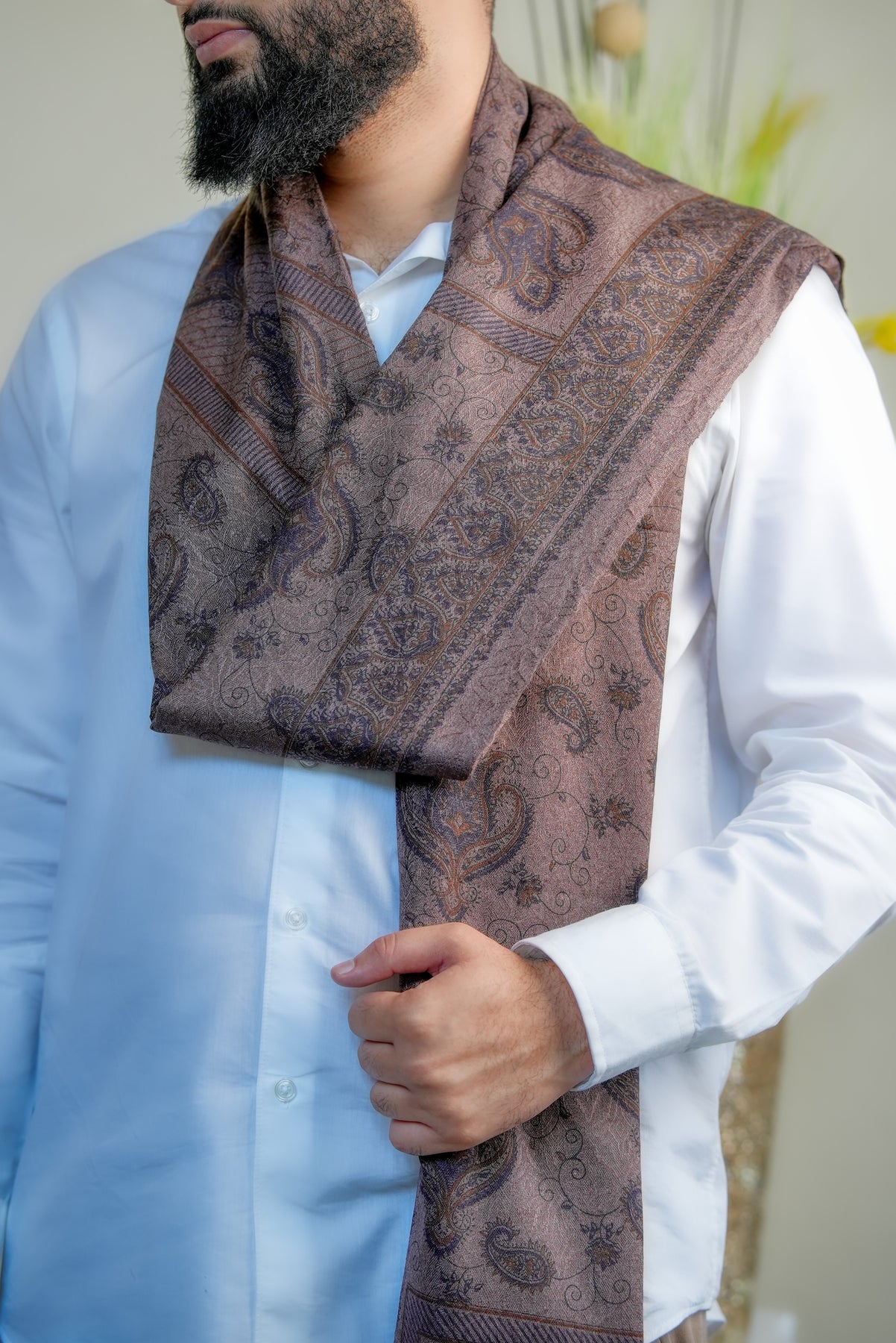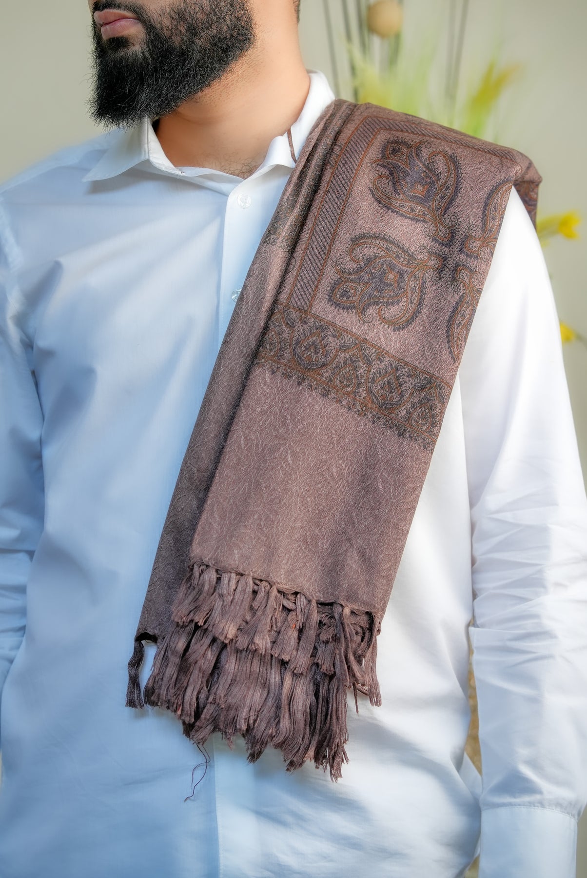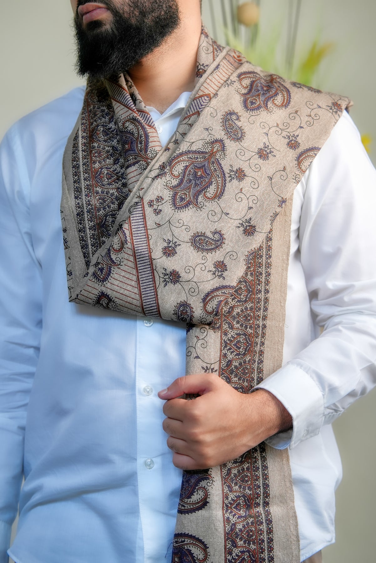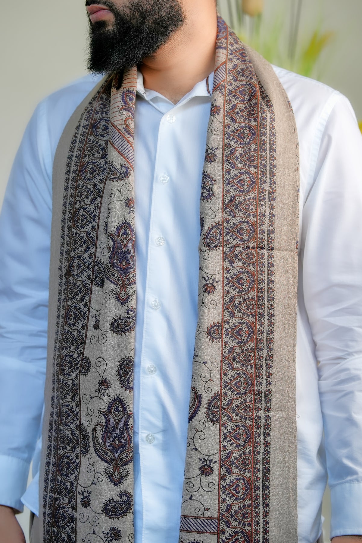 The ‘Zahara Garden Vine’ shawl celebrates the quiet elegance of a garden in full bloom, where every flower and tendril moves in rhythm with nature. Its intricate, intertwined motifs evoke serenity, harmony, and timeless beauty, making it more than an accessory — it’s a reflection of nature’s poetic grace.