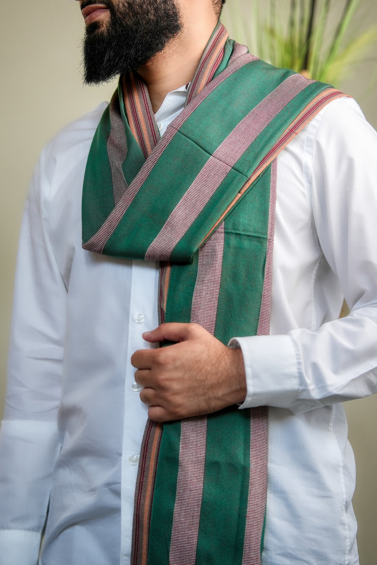 Introducing our ‘Socotra Moss Veil’ shawl, inspired by the rare, lush greenery that emerges among the rocky landscapes of Socotra. Its base is a gentle moss green, evoking the softness of shaded valleys after rainfall. Subtle hints of earth-toned accents weave through the design, capturing the natural harmony of stone, soil, and thriving vegetation.