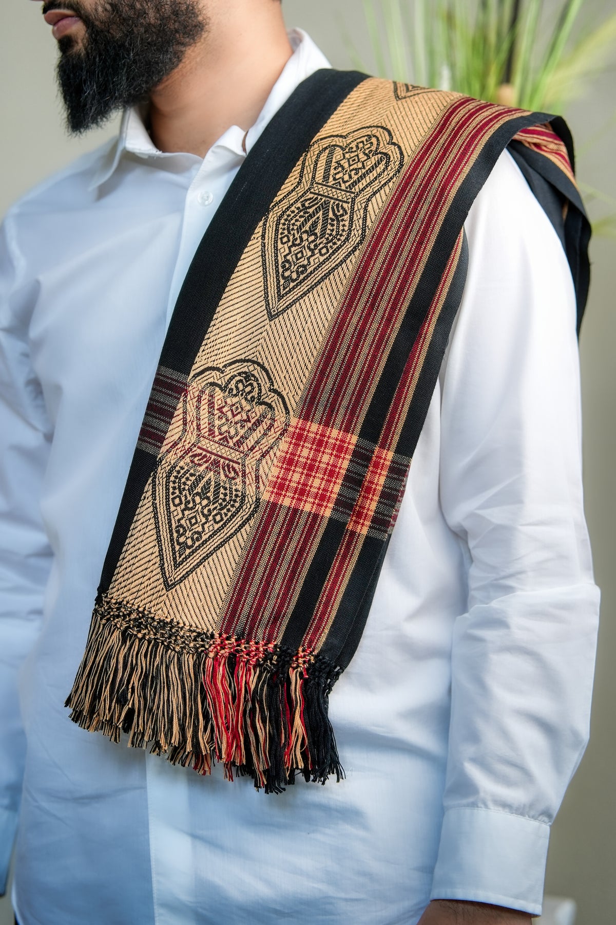 Woven with care using durable, high-quality materials, this scarf features a bold Na’layn emblem embedded into a sleek base. The design strikes a balance between subtlety and symbolism, making it a powerful accessory that can be worn daily or during moments of spiritual reflection.