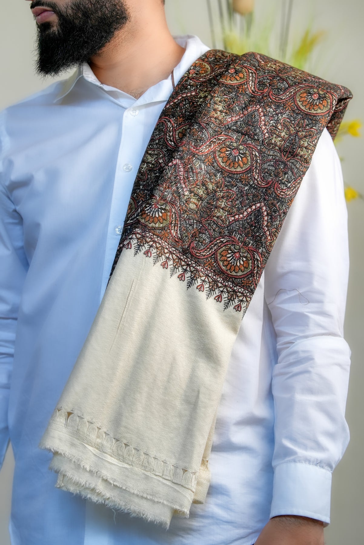 The 'Zahra' Bloom Collection is a celebration of the beauty found in nature, where delicate flowers and graceful vines intertwine across soft, flowing bases. Each shawl in this series carries its own story, inspired by gardens in full bloom — from vibrant roses and golden blossoms to serene, vine-covered patterns. The embroidery dances with color and form, capturing the timeless beauty of floral landscapes in every stitch.
